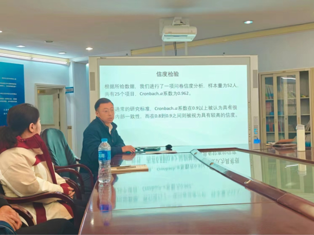 经三位教师展示与分享,大学英语教学团队的教师们对展示内容表现出浓厚兴趣,纷纷表达了对课程内容与建设的看法。张博伟老师对大学英语教师课堂教学认同度展开了调查研究,并将统计结果与团队成员分享;金一丹老师主要从英语课堂活动设计、学生参与活动的活跃度进行经验分享;孙旭老师则从自身教学经验入手,介绍了教学中遇到的问题、解决方案以及教学感悟。