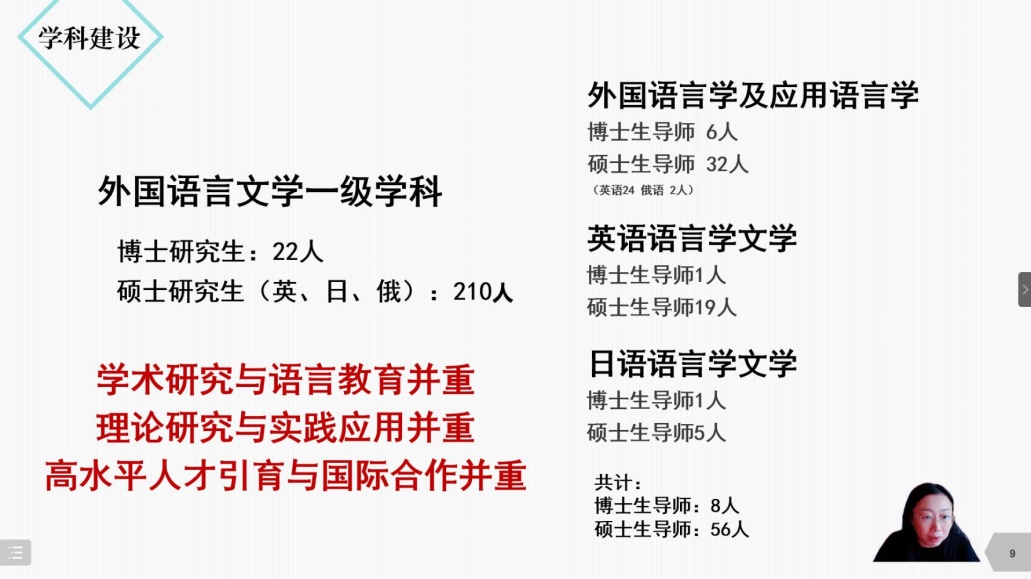 英语语言文学专业、俄语语言文学专业、日语语言文学专业和外国语言学及应用语言学专业设分会场。朴玉教授、张立岩副教授、安徽副教授、李锡江教授分别作学术报告,并解答营员们在学术、科研和报考上的诸多疑问,对同学们求知若渴的钻研精神表示欣赏,也诚挚地欢迎大家来到公共外语教育学院继续深造。9月24日进行优秀营员考核并评选出优秀营员。