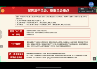 回溯改革征途,点亮时代灯塔。通过回顾十一届三中全会以来的历届三中全会,深入理解改革开放的成功经验和未来发展方向。聚焦三中全会,提取全会重点。支部团员集中讨论了二十届三中全会的核心议题和重点决策,以及它们对国家未来发展的深远影响。铸造中国精神,绽放时代荣光。探讨如何将三中全会精神融入到日常工作和学习中,激发青年学生的爱国热情和责任感。全体团员共同观看了关于二十届三中全会的短片,加深了对二十届三中全会精神的理解,并充满将这些精神转化为实际行动的动力,为实现中华民族的伟大复兴贡献力量。团员代表结合青年个人实际,分享了对全会精神的理解和感悟,表达了对国家未来发展的坚定信心。此次团日活动在热烈而有序的氛围中圆满结束。