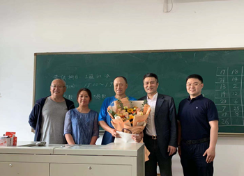 2021622日,公共外语教育学院在南岭校区逸夫楼404教室开展暖心课堂活动。对学院大学英语第三教研室即将光荣退休的韩忠利老师进行慰问。学院党委书记贺强、副书记徐杰、副院长沈斌、党委办公室主任李欣霜及大学英语第三教研室主任张绪忠、支部书记孟辉参加了本次慰问活动。