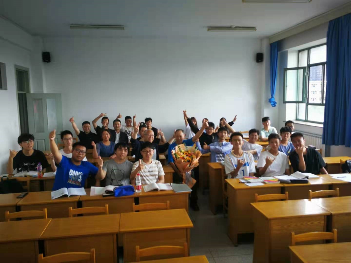 首先,贺强书记简要介绍学院暖心课堂活动的初衷。“暖心课堂”是公共外语教育学院党委为每一位即将退休离开教学岗位教师,在学期末课堂上开展的慰问活动。贺书记代表学院向韩老师献上鲜花,对于他二十余年来在教书育人的岗位默默耕耘,无私奉献表达了最真挚的谢意,并对他退休之后开启人生新征程送出了美好的祝愿。