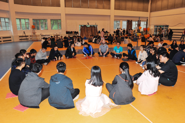 519日下午,开营仪式在体育馆举行。教务处副处长王瑞参加了开营仪式并讲话,吉大国际教学周跨文化教育专家Nancy、外教Greg、交换生代表及学生代表依次发言。随后,我院副院长王守宏教授将夏令营营旗交接给学生代表,标志着2019吉林大学英语夏令营的正式开启。仪式之后,唐班、匡班同学混合分组,制作队旗、构思口号;在时速传送、女王游戏等有趣的环节过后,同学们彼此增进了解,结下友谊。