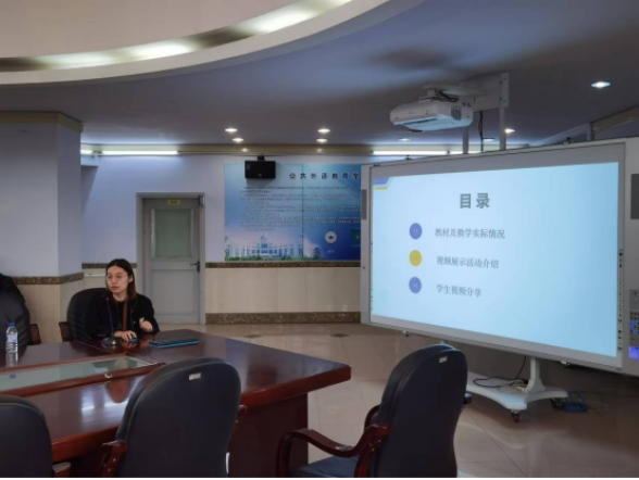 随后,徐志卿老师分享了自己如何根据教材及教学实际设计实施视频展示活动。为有效提高课堂效果,她精心准备视频题目,充分考虑学生需求,提供丰富的脚手架资源,指导学生制作视频,并挑选优秀作品进行课堂展示。通过活动兼顾了语言输入和输出,学生不仅学习到了知识,还收获了成就感。徐老师详细阐述了活动设计的初衷和效果,并现场展示了学生的优秀作品。