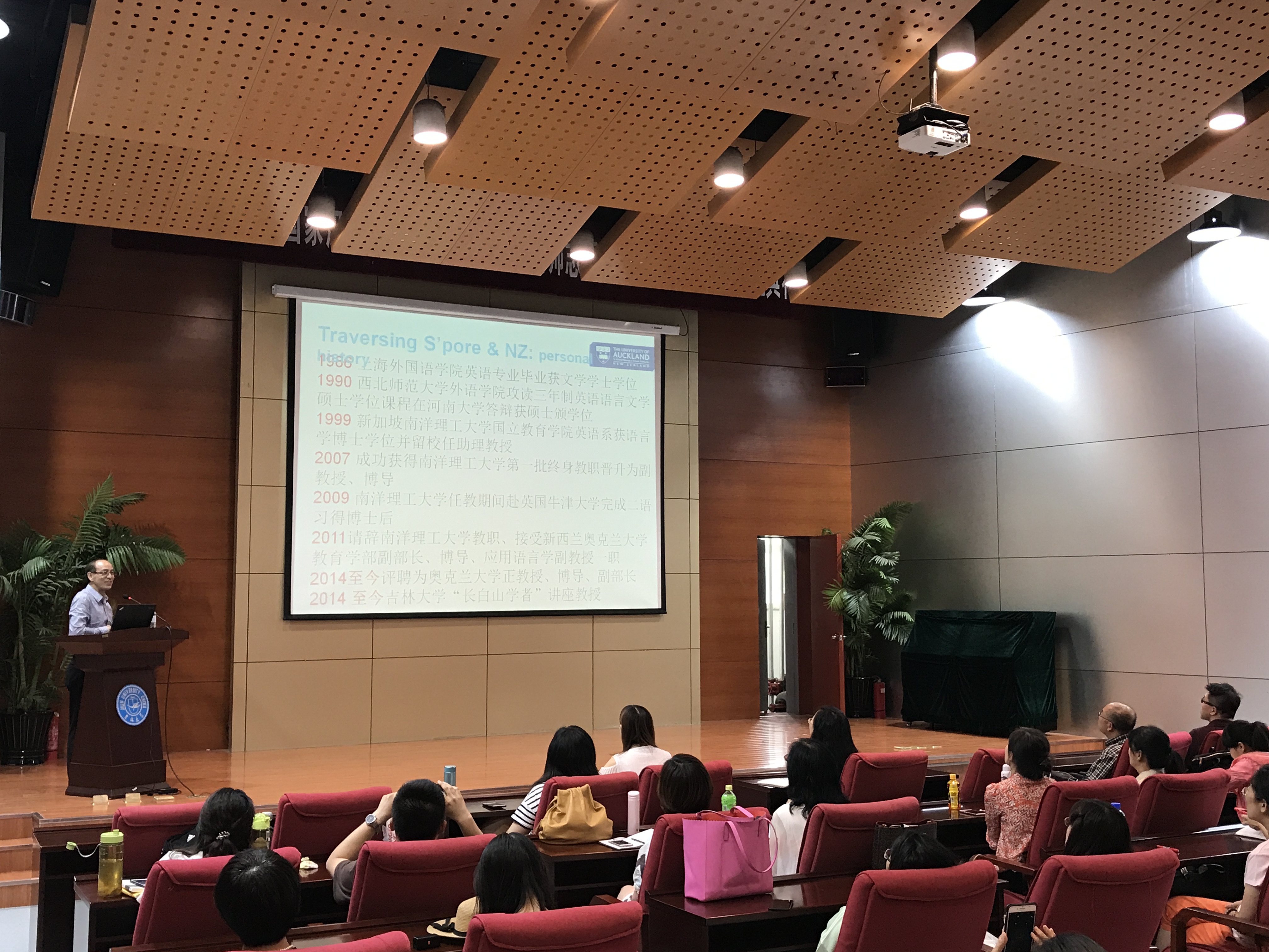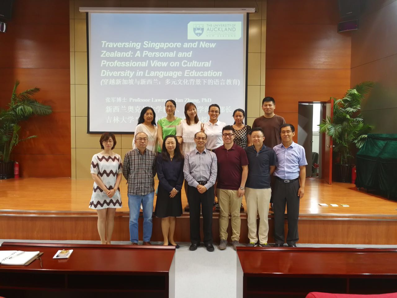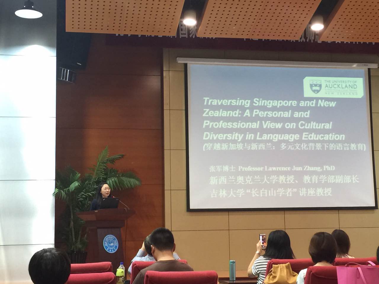 2017年6月23日,由杏彩官方网站、吉林大学高校外语教育研究中心和吉林大学学生就业创业指导与服务中心共同举办的吉林大学“国际组织人才培养与推送”系列讲座第三讲,暨杏彩官方网站“国际组织 中国参与”系列讲座在国际大讲堂顺利举行。本次讲座邀请新西兰奥克兰大学教育学院副院长、吉林大学“长白山”讲座教授张军教授为参会的老师与同学们做了题为“Traversing Singapore and New Zealand: A Personal and Professional View on Cultural Diversity in Language Education”(穿越新加坡与新西兰:多元文化背景下的语言教育)的主题讲座。学院院长潘海英教授、副院长王守宏教授和我校师生共同参加了本次讲座,讲座由潘海英教授主持。