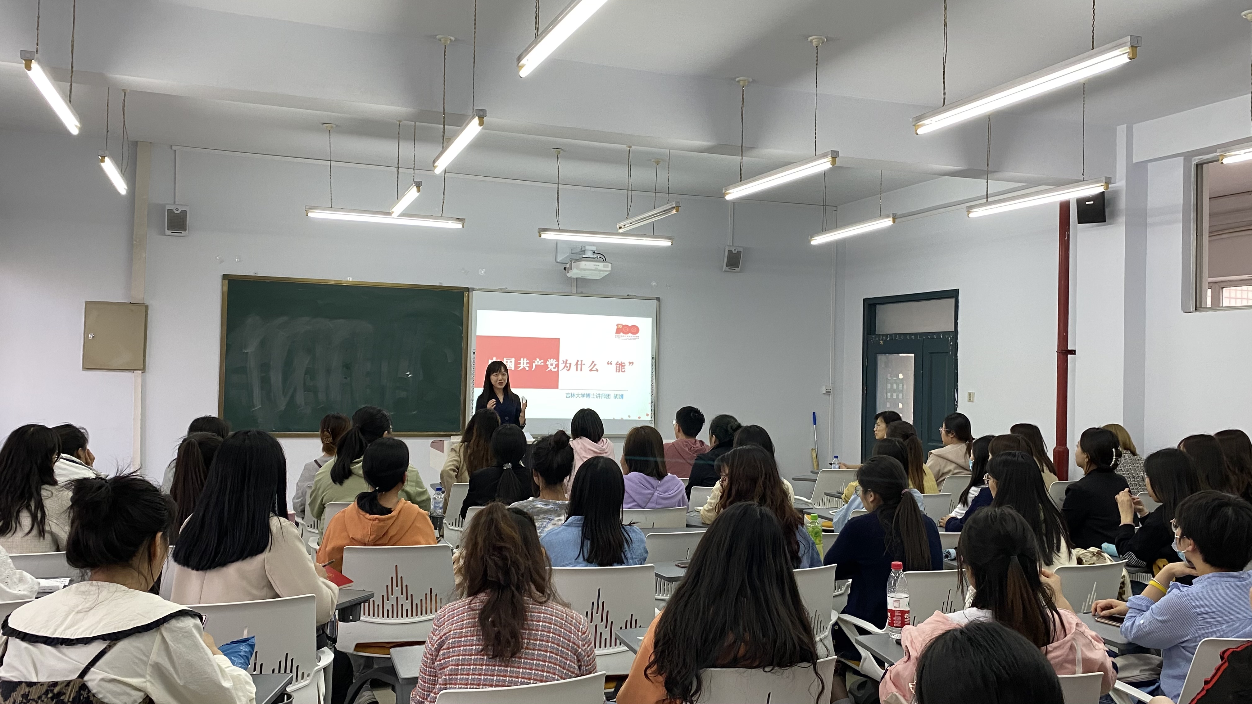 为庆祝中国共产党建党一百周年,进一步让广大研究生在党史学习教育中“明理、增信、崇德、力行”,5241830,在经信楼D401教室,吉林大学博士讲师团讲师胡靖为杏彩官方网站学生三个党支部的全体中共党员、发展对象和入党积极分子上了一堂主题为“中国共产党为什么‘能’”的党史课,本次活动由辅导员曾媛主持。