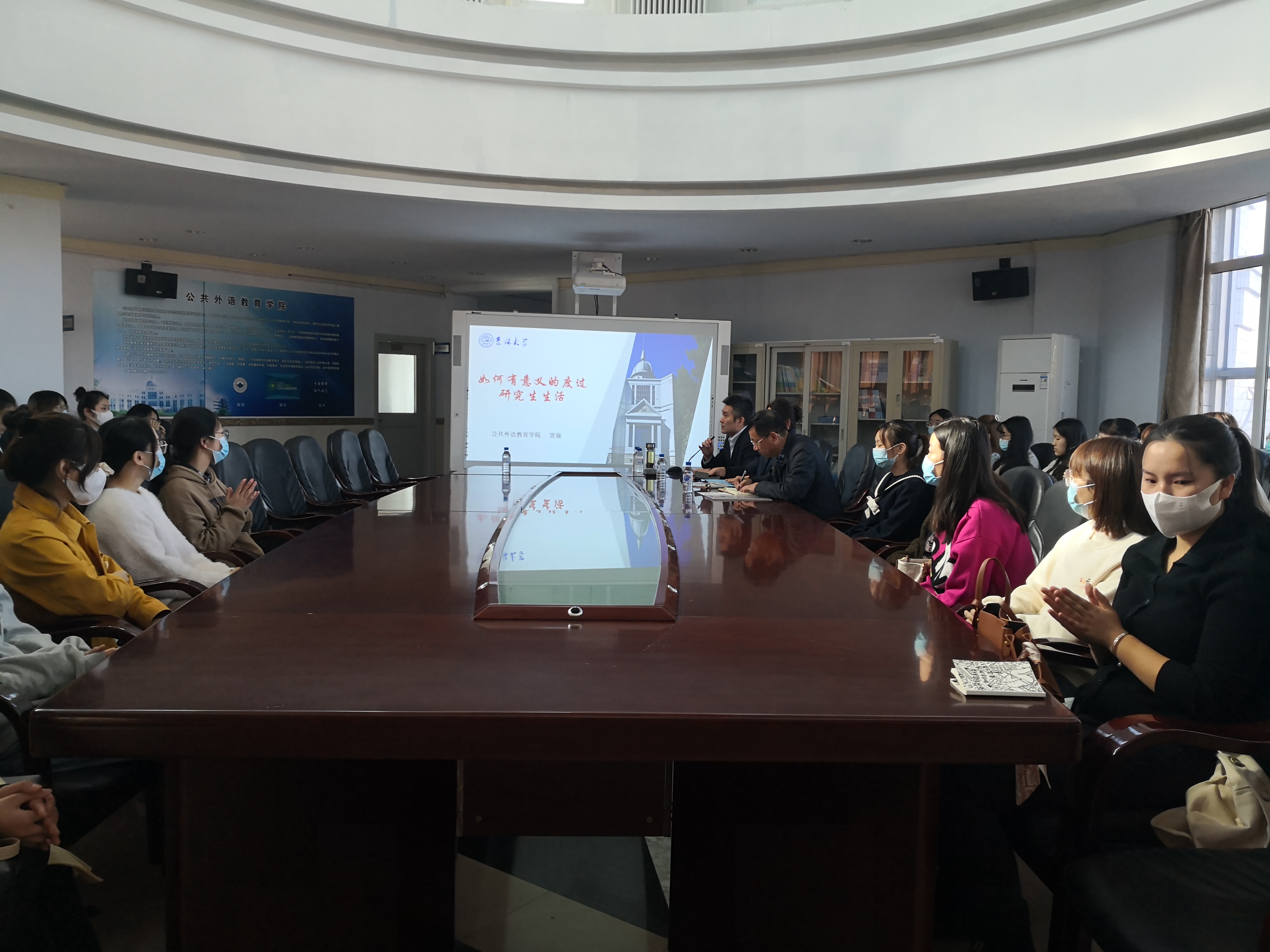 2021年10月11日上午,公共外语教育学院组织了2021级研究生入学教育之思想政治教育讲座。本次讲座由学院党委书记贺强主讲,党委副书记徐杰主持。党建工作联络员蒲韶华、辅导员曾媛以及全体2021级研究生新生参加讲座。