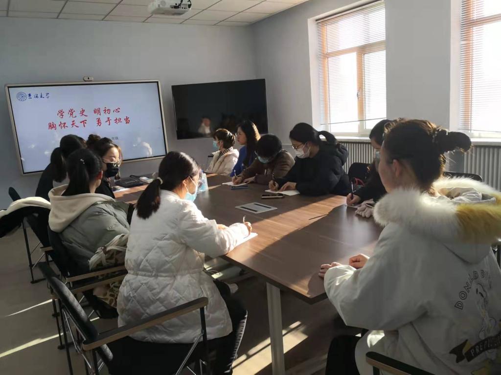 为深入学习贯彻党的十九届六中全会精神,加强入党积极分子的党性修养,提高思想政治觉悟和知识素养,更好了解党的历史进程,坚定入党动机和信念,2021年11月25日9:00,公共外语教育学院党委书记贺强在外语楼六楼601会议室为我院入党积极分子讲授了一堂以“学党史,明初心,胸怀天下,勇于担当”为主题的党课,研究生辅导员曾媛主持此次活动。