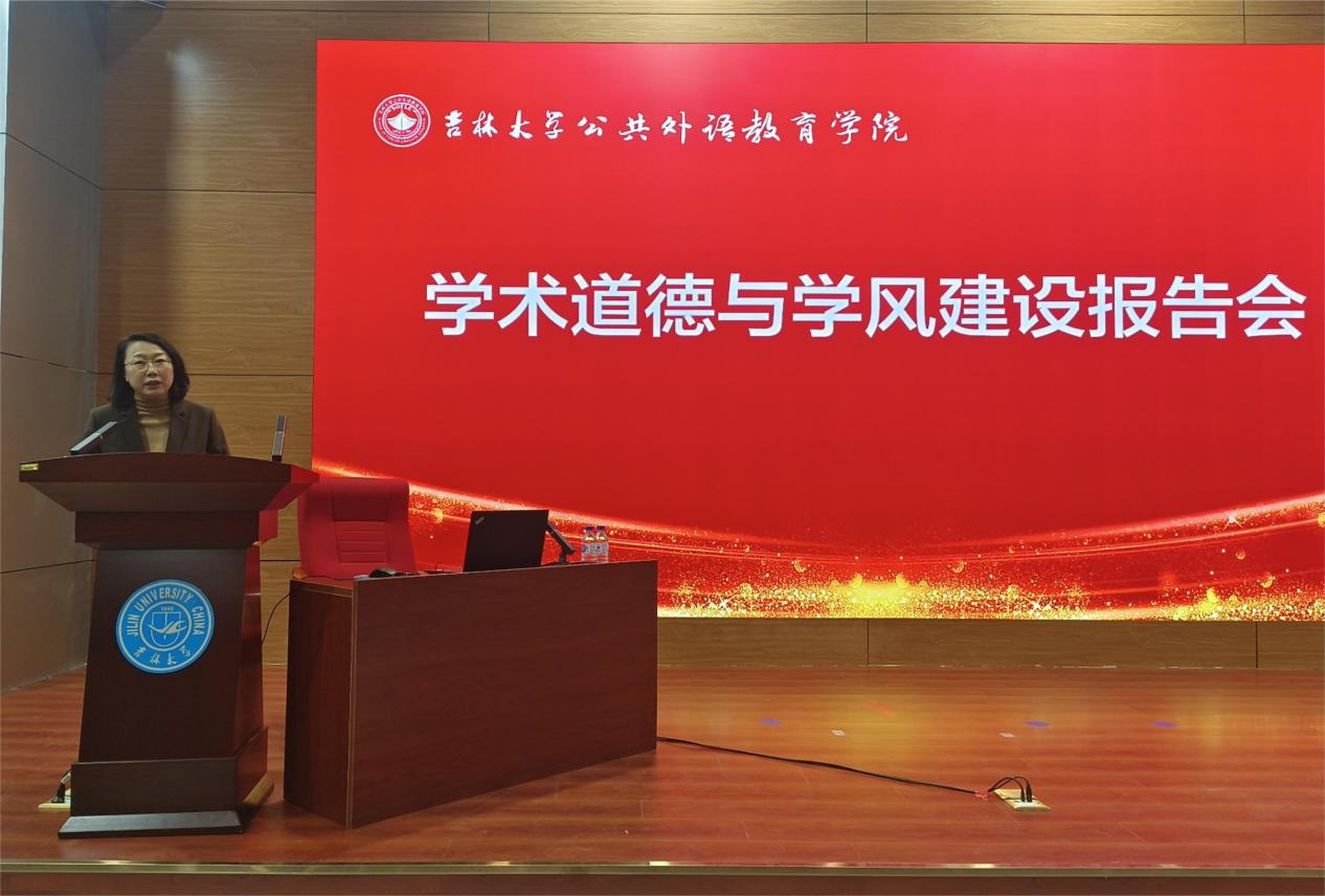 为深入贯彻落实习近平总书记关于弘扬科学家精神的重要论述和科技部、教育部关于加强学术道德建设的系列文件精神,根据学校学风建设总体规划和宣传教育工作有关要求,11月2日下午,公共外语教育学院在中心校区国际学术大讲堂举办了学术道德与学风建设报告会。报告会邀请了吉林大学校务委员会副主任、校学位评定委员会副主席、考古学院古籍研究所匡亚明特聘教授吴振武教授作为主讲嘉宾,由公共外语教育学院院长潘海英教授主持。学院主要领导、教职工及研究生共一百五十余人参会,社会科学研究院成果管理科工作人员刘卓老师应邀出席了本次报告会。